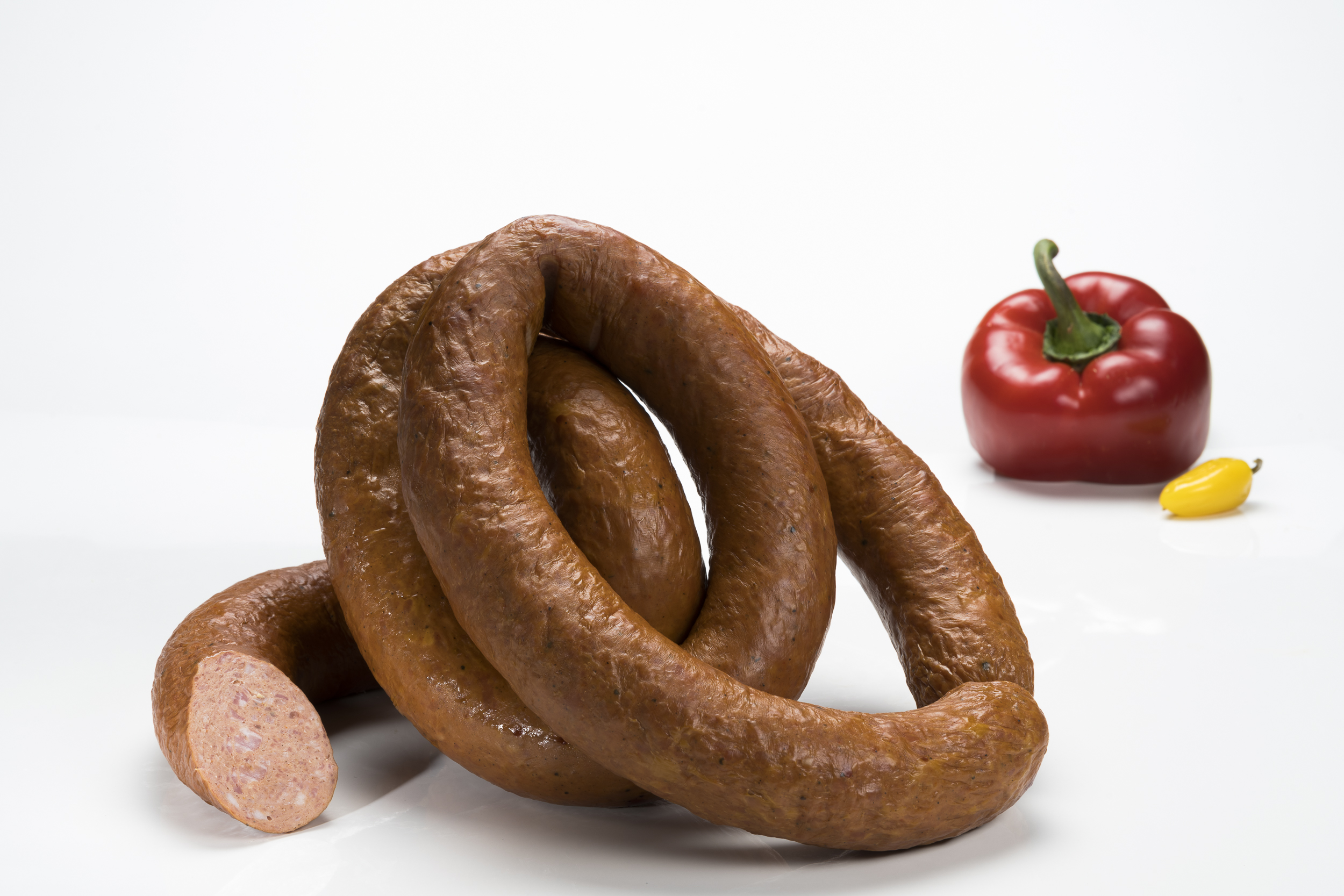 Zutaten: 43% Schweinefleisch, 40% Rindfleisch, Trinkwasser, Speck vom Schwein, Speisesalz, Gewürze, Dextrose, Speisewürze, Gewürzextrakte, Rindsdarm, Buchenrauch, Konservierungsstoff: Natriumnitrit, Antioxidationsmittel: Ascorbinsäure, Stabilisator: Diphosphate, Geschmacksverstärker: Natriumglutamat.