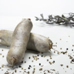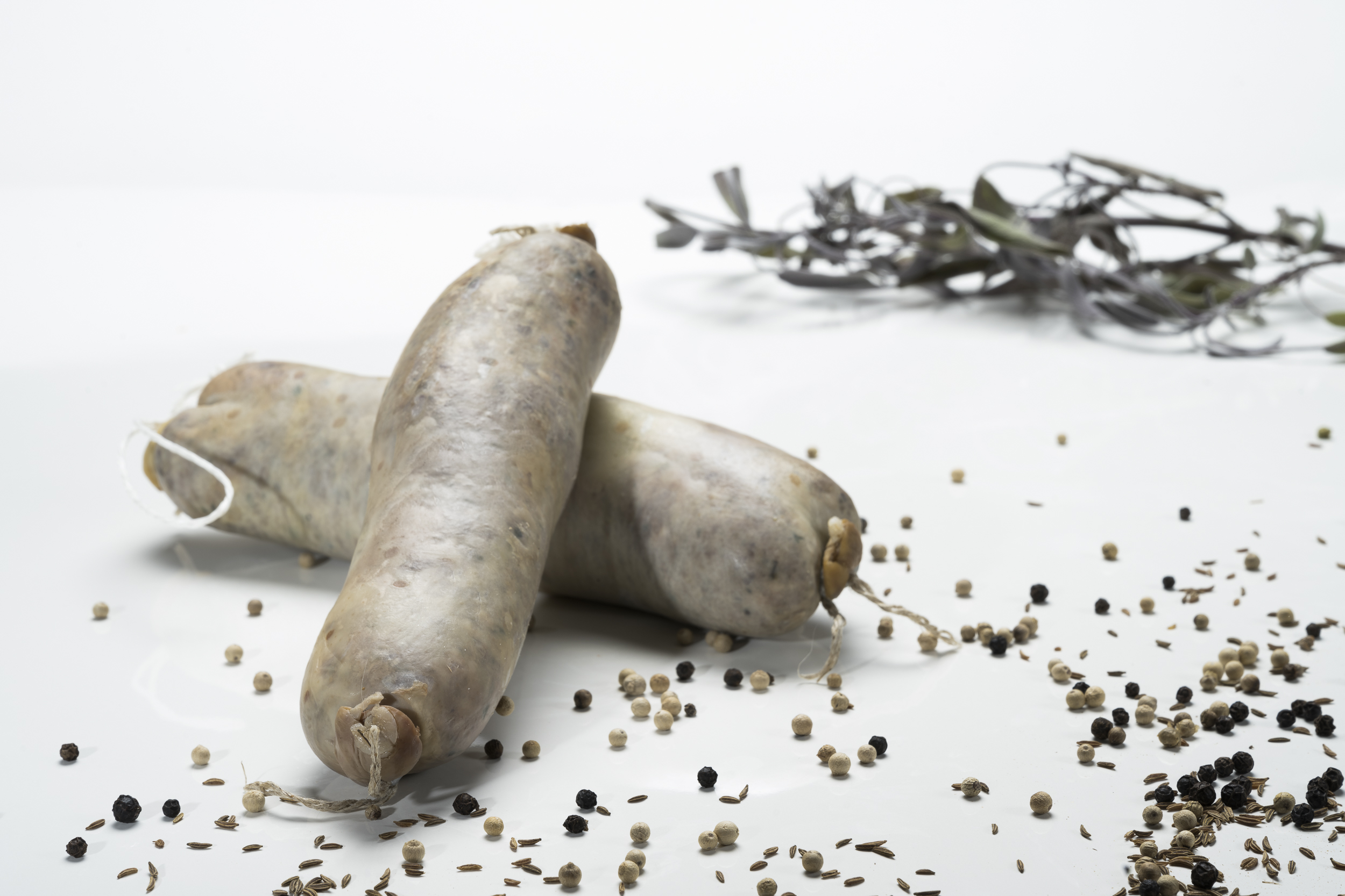 Schweinefleisch, Schwarte und Leber vom Schwäbisch Hällischem Schwein, Rindfleisch und Rinderlunge werden mit Rollgerste und Reis sowie mit frischen Zwiebel und Kräuter vermengt