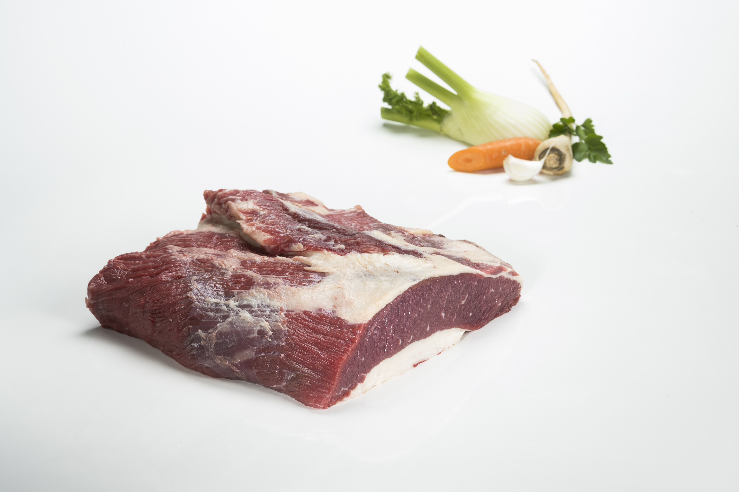 Der Brustkern ist ein von Fett ummanteltes Stück Fleisch welches im Inneren wenig durchzogen ist. Aus dem vorderen und mittleren Teil der Rinderbrust. Dieses Teilstück ist etwas grobfasrig, aber sehr saftig und geschmackvoll.