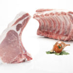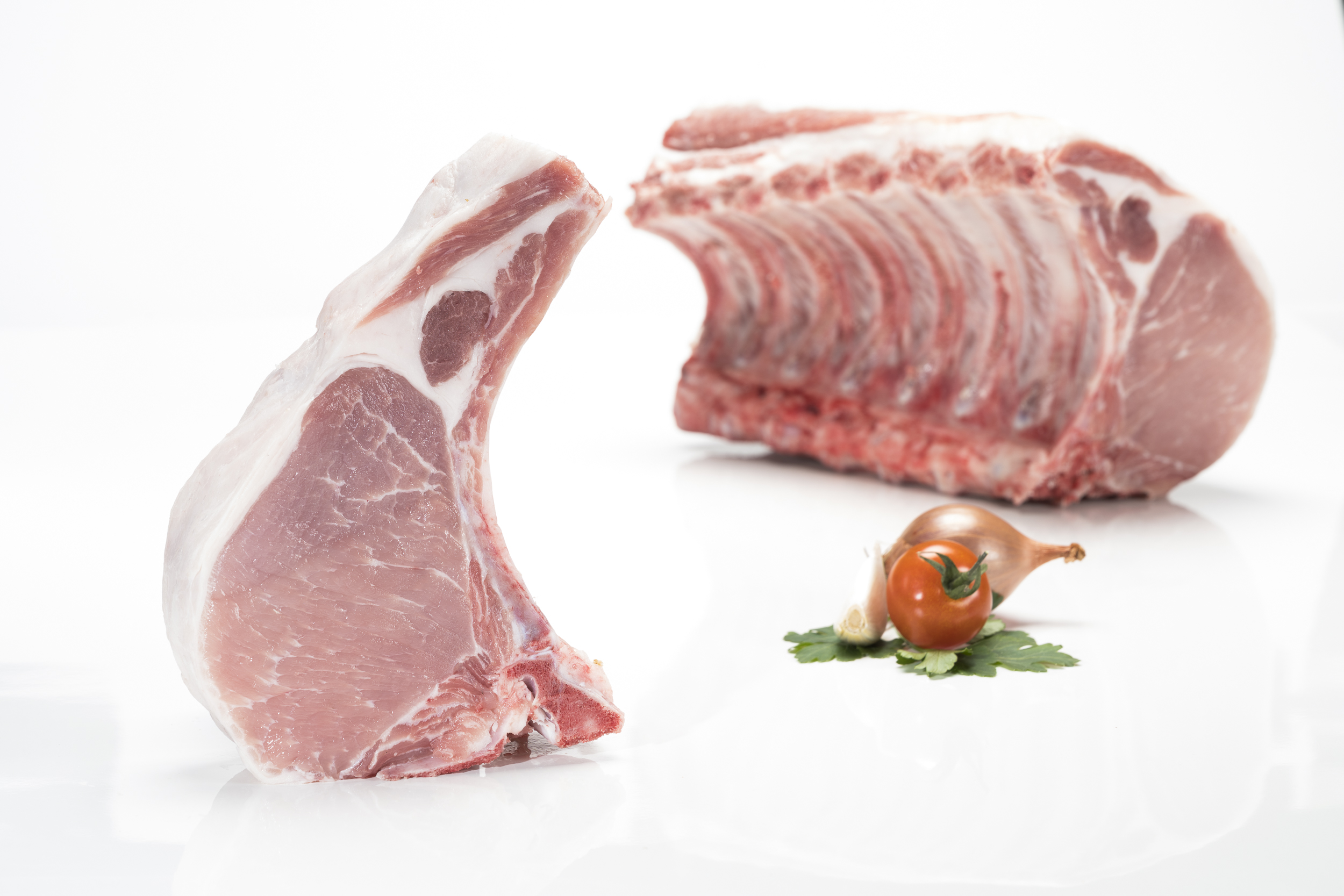 Karree aus dem Rücken mit Knochen und leichtem Fettrand, sehr saftig und fein marmoriert.