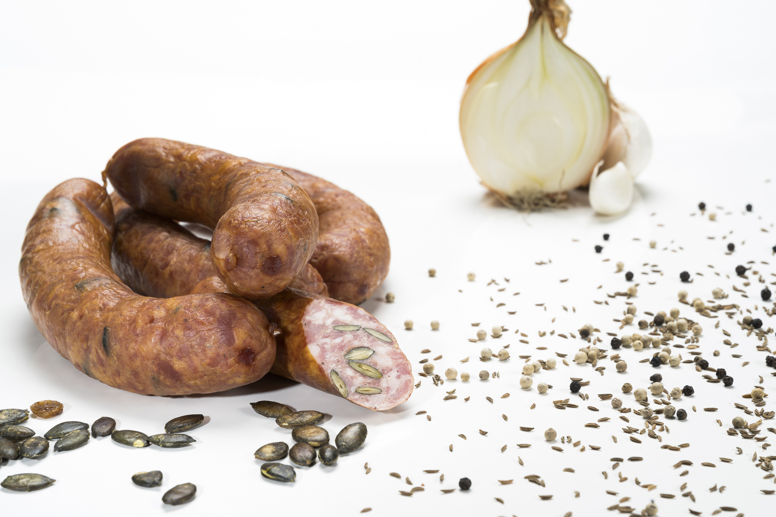 Mageres Rind- und Schweinefleisch und ein wenig Speck und traditionelle Gewürze runden den Geschmack dieses herzhaften Würstels ab.