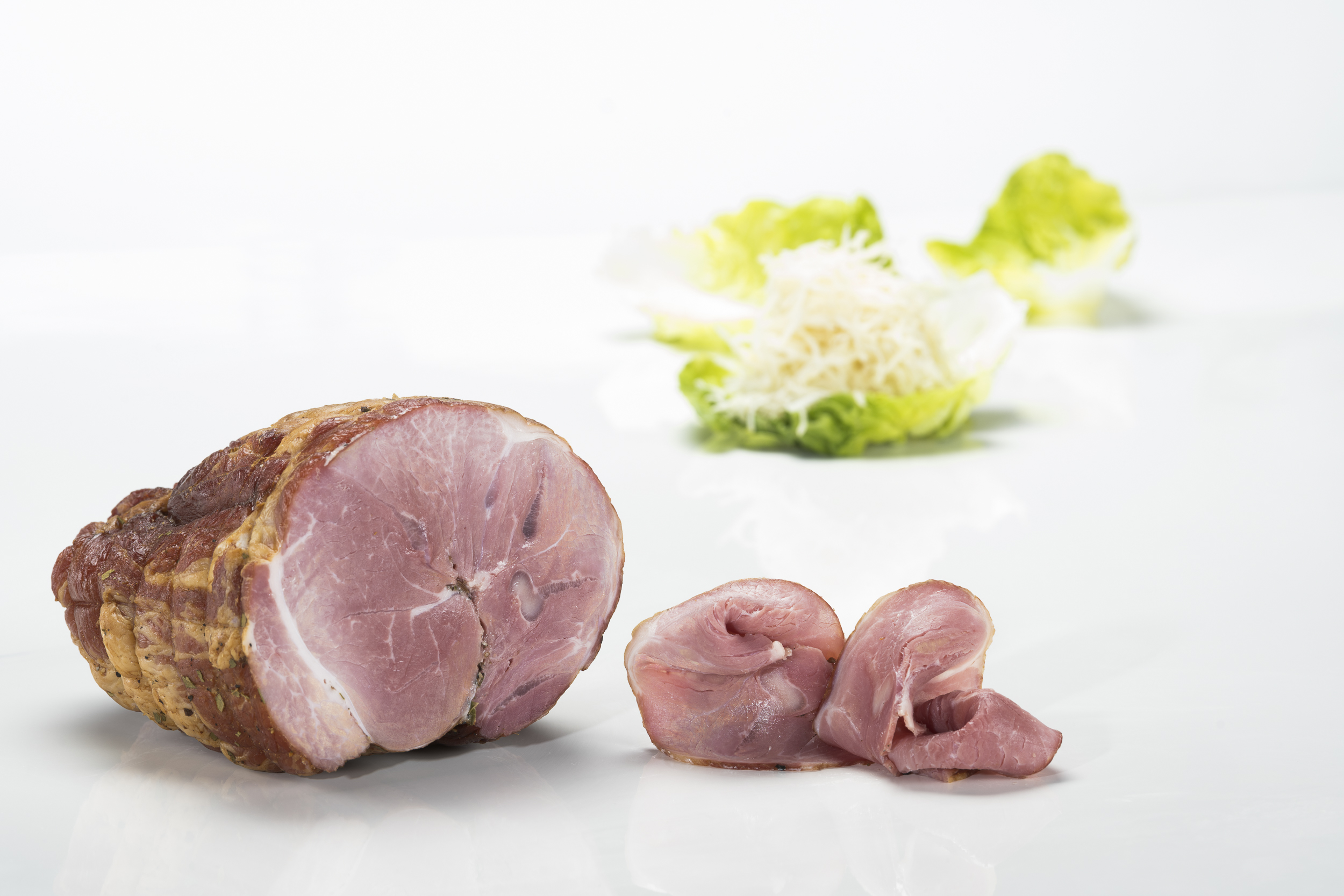 handgesalzenes Bauerngeselchtes aus der Schulter gerollt, leicht marmoriert saftig und zart